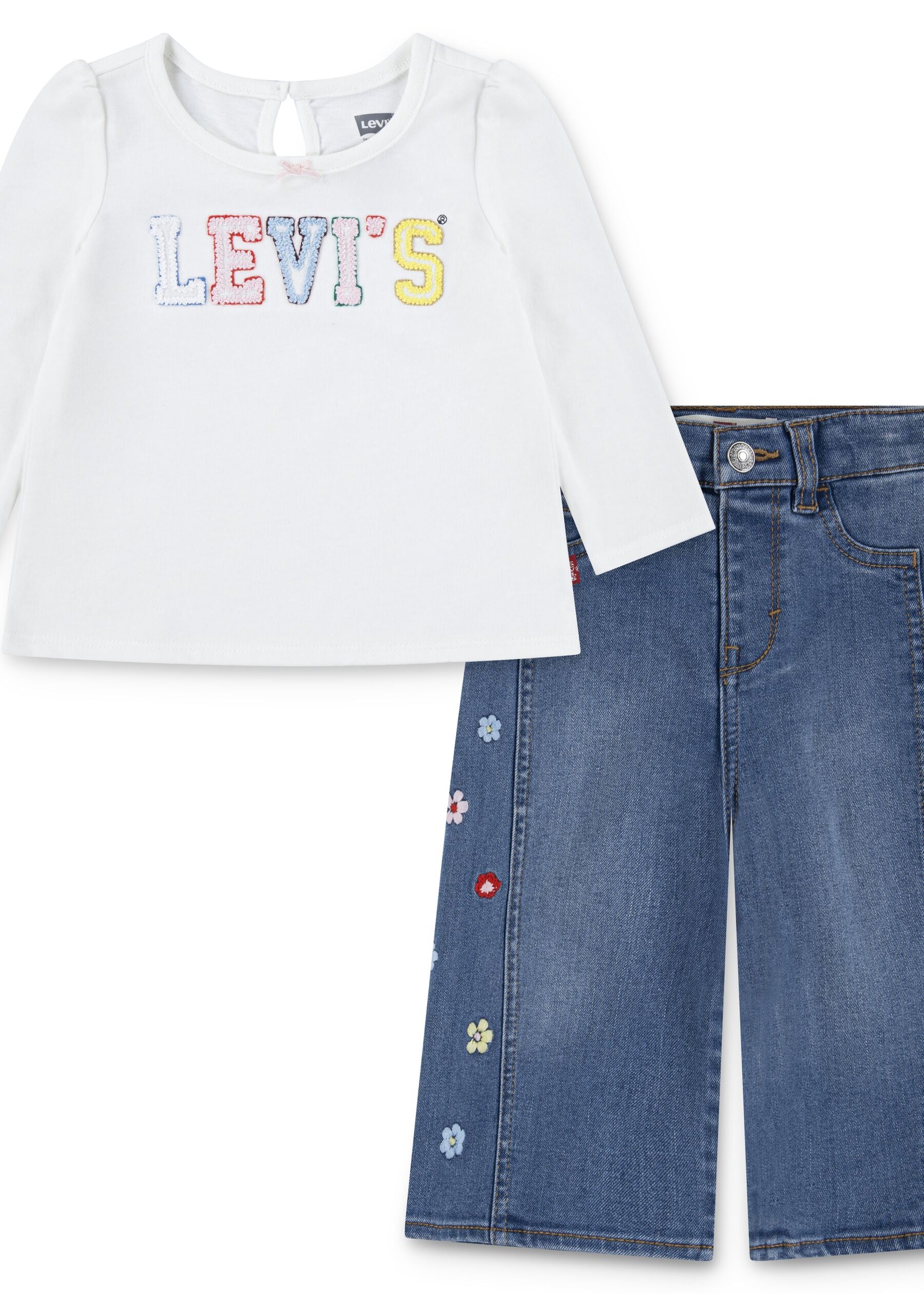 Completo 2 Pezzi Bambina con T-shirt Bianca e Jeans Ricamati | Levi’s