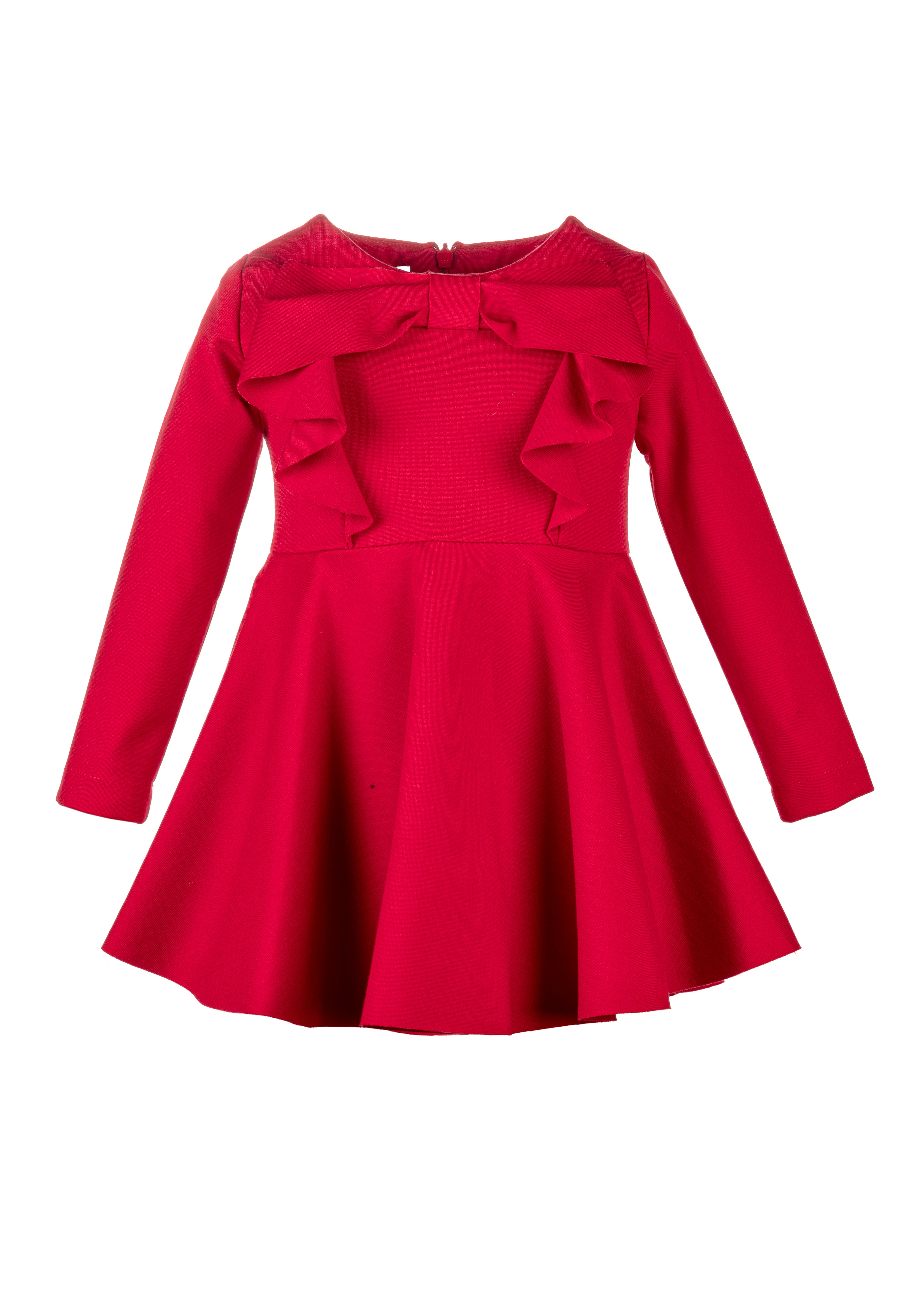 Abito Rosso Bambina con Fiocco e Rouches | Elsy