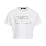 T-shirt bianca cropped con logo Couture | Balmain Kids