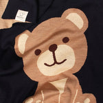 Questa copertine neonato presenta un simpatico orsetto lavorato in maglia sul davanti.