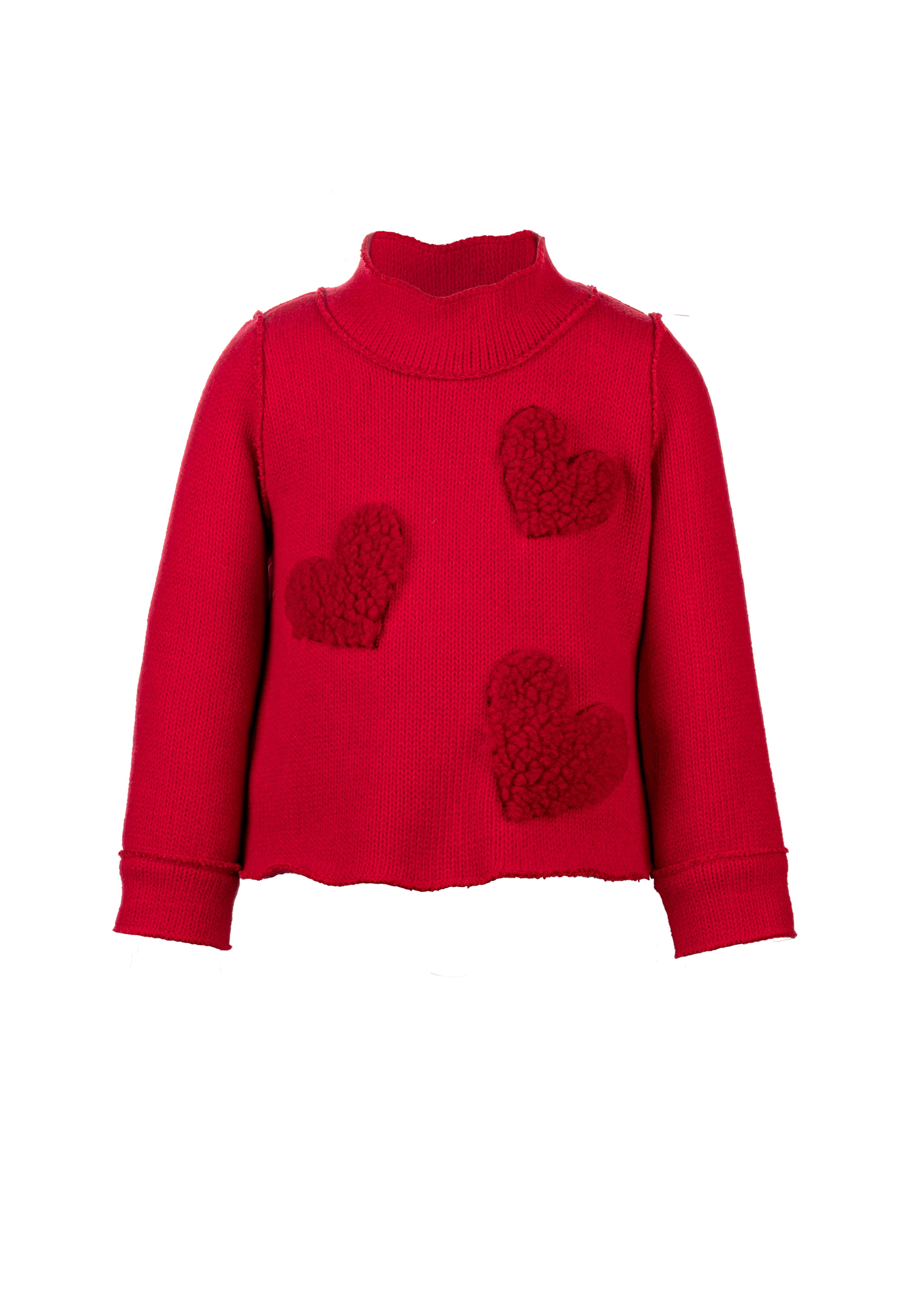 Maglione Rosso Bambina con Cuori Applicati | Elsy