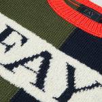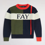 Pull girocollo realizzato in maglia di lana con motivi grafici multicolor e maxi logo Fay jacquard sul fronte.