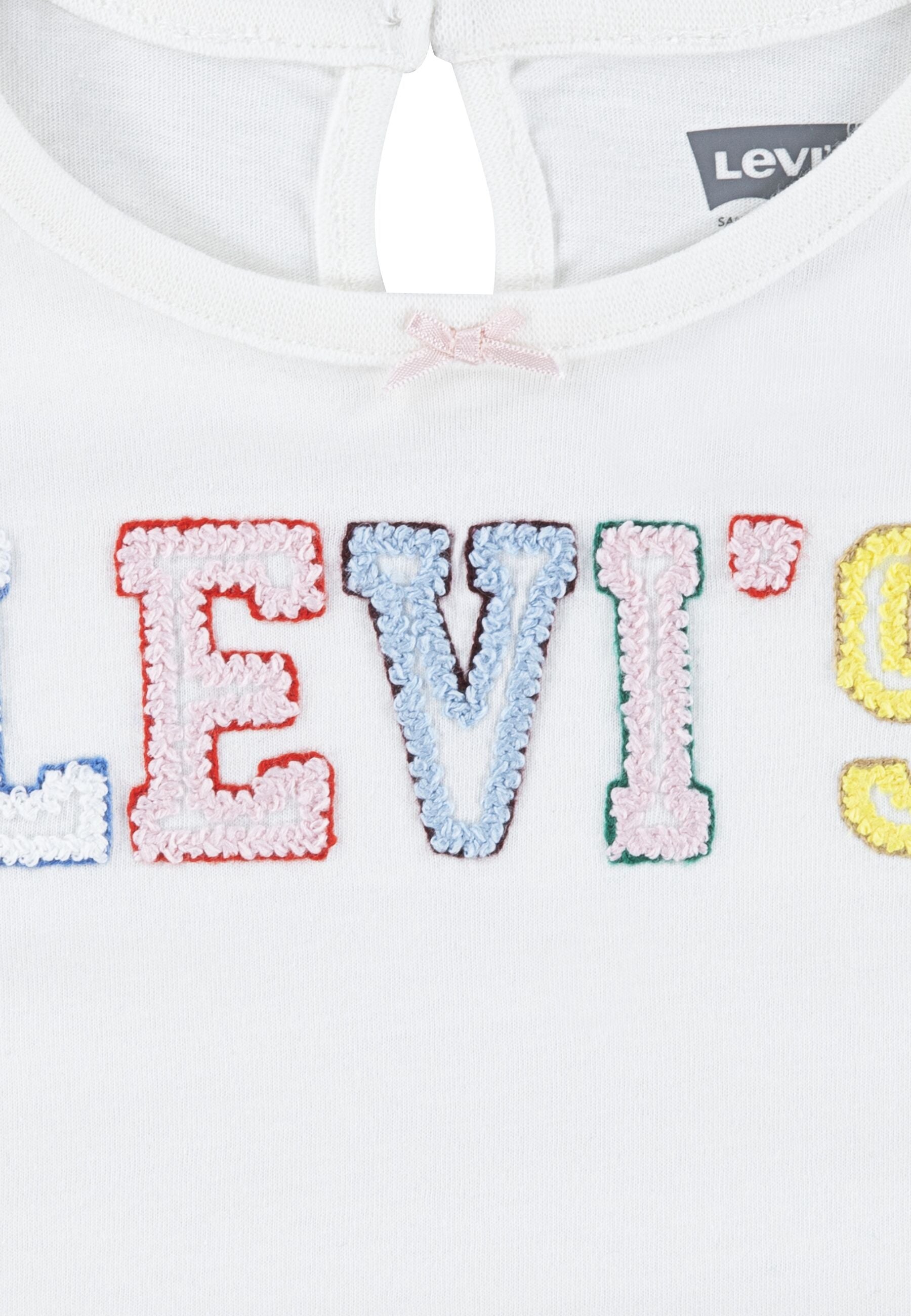 • T-shirt bianca a maniche lunghe con logo Levi’s multicolor ricamato sul petto.