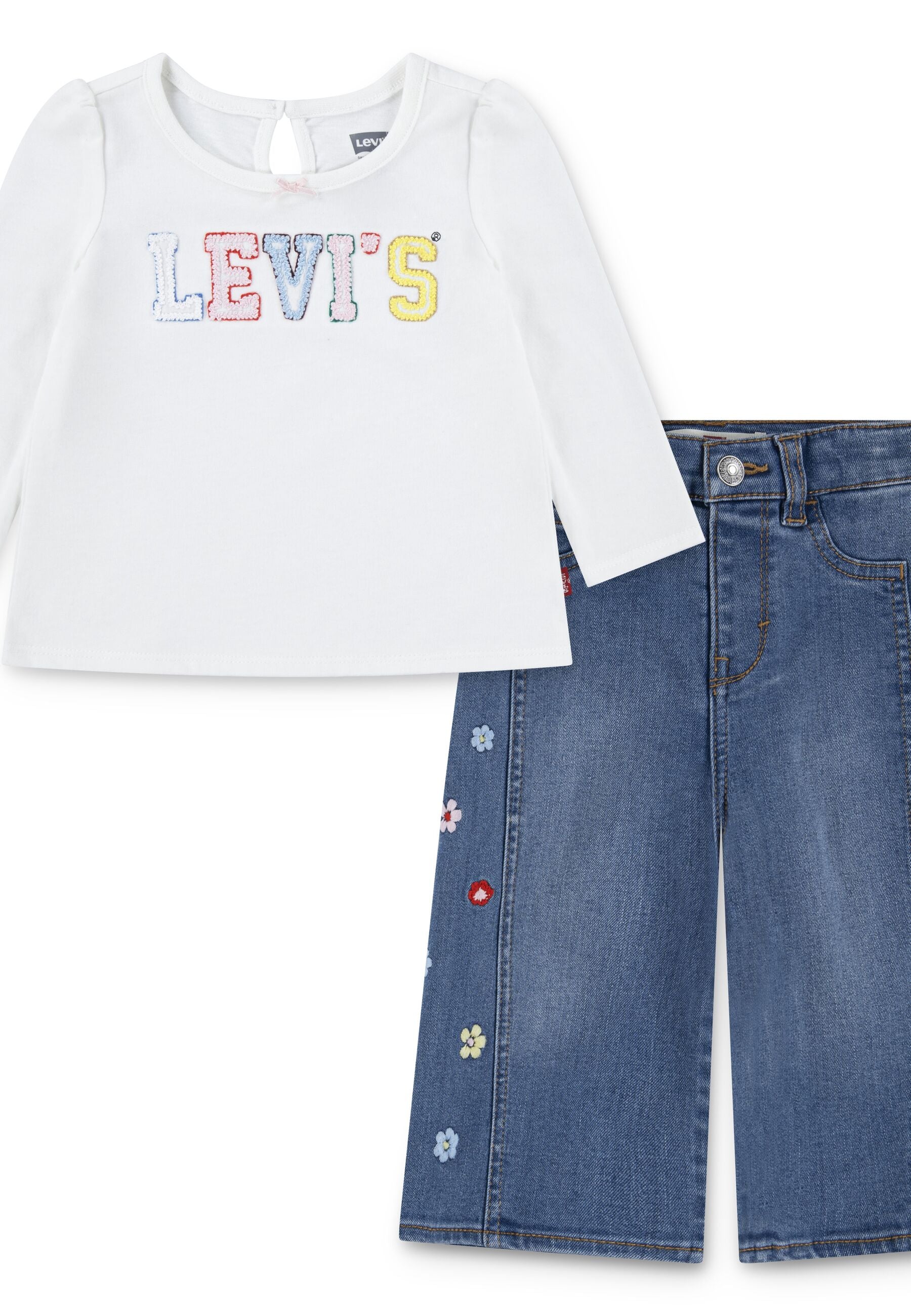 Completo 2 Pezzi Bambina con T-shirt Bianca e Jeans Ricamati | Levi’s