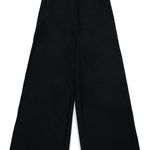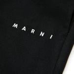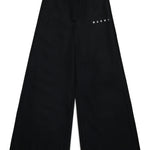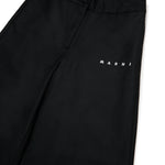 Pantaloni neri con chiusura frontale con zip e bottoni, vita regolabile grazie ad elastico interno con bottoni e tasche laterali. Sono decorati con logo bianco, ricamato su una gamba.