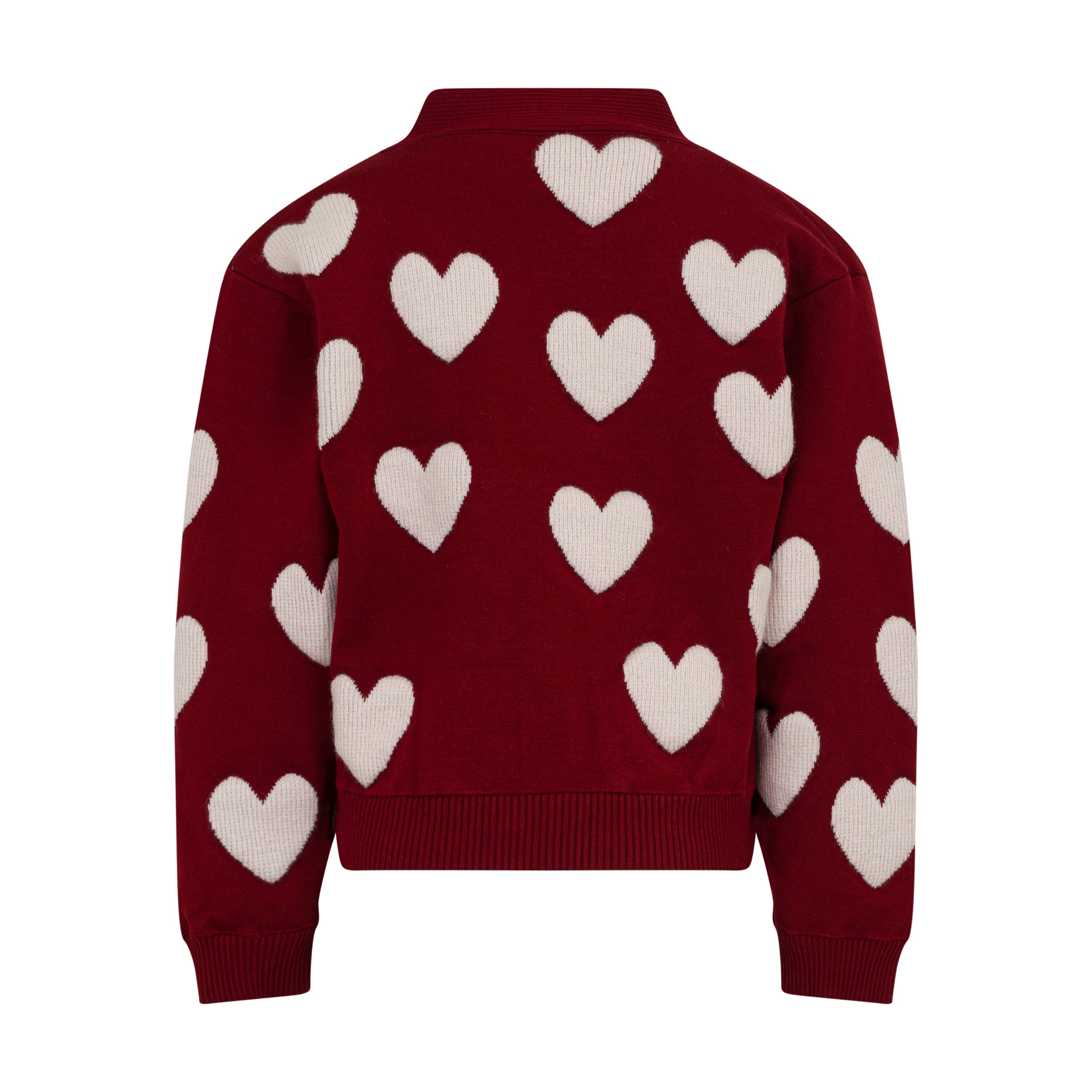 Realizzato in maglia morbida, presenta una fantasia all-over di cuori bianchi a contrasto che lo rende unico e accattivante. La chiusura frontale con bottoni tono su tono e il taglio comodo assicurano praticità e comfort.