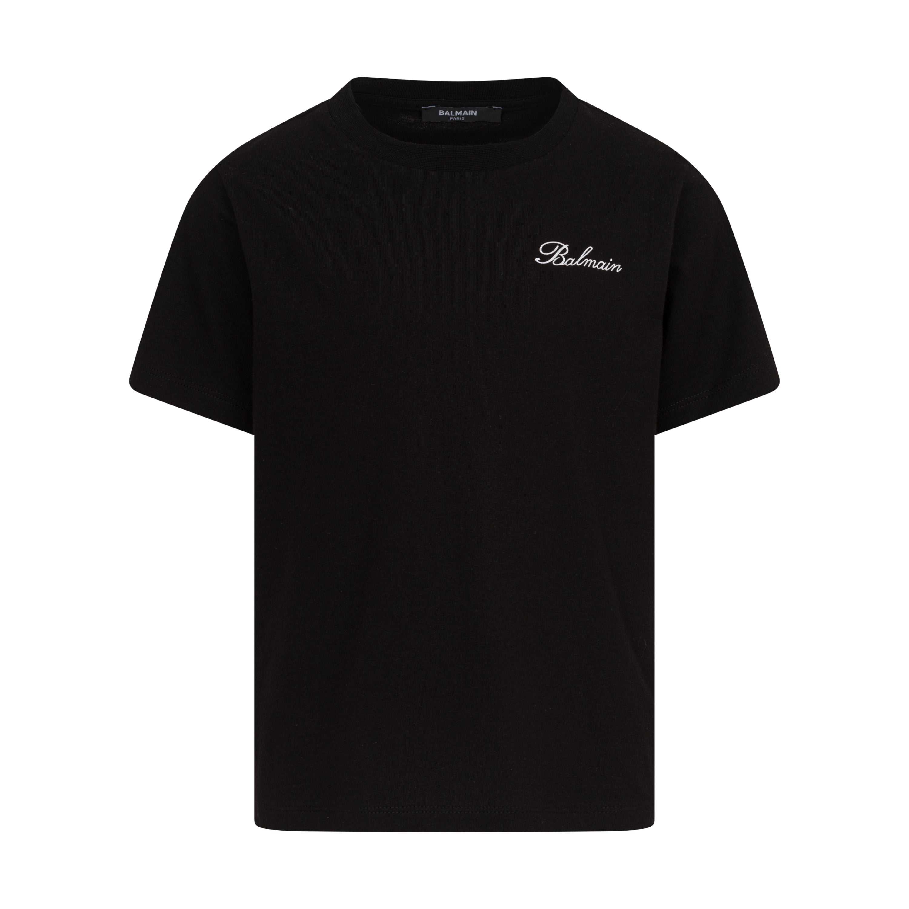 T-shirt Nera con Logo Ricamato Balmain Kids