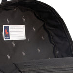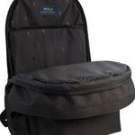 Design minimal e sofisticato: zaino nero con iconico logo Ralph Lauren ricamato in bianco sul fronte, per uno stile intramontabile.