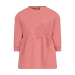 Design romantico e versatile: abito in morbida felpa rosa, arricchito da cuoricini tono su tono sul davanti per un tocco dolce e raffinato.